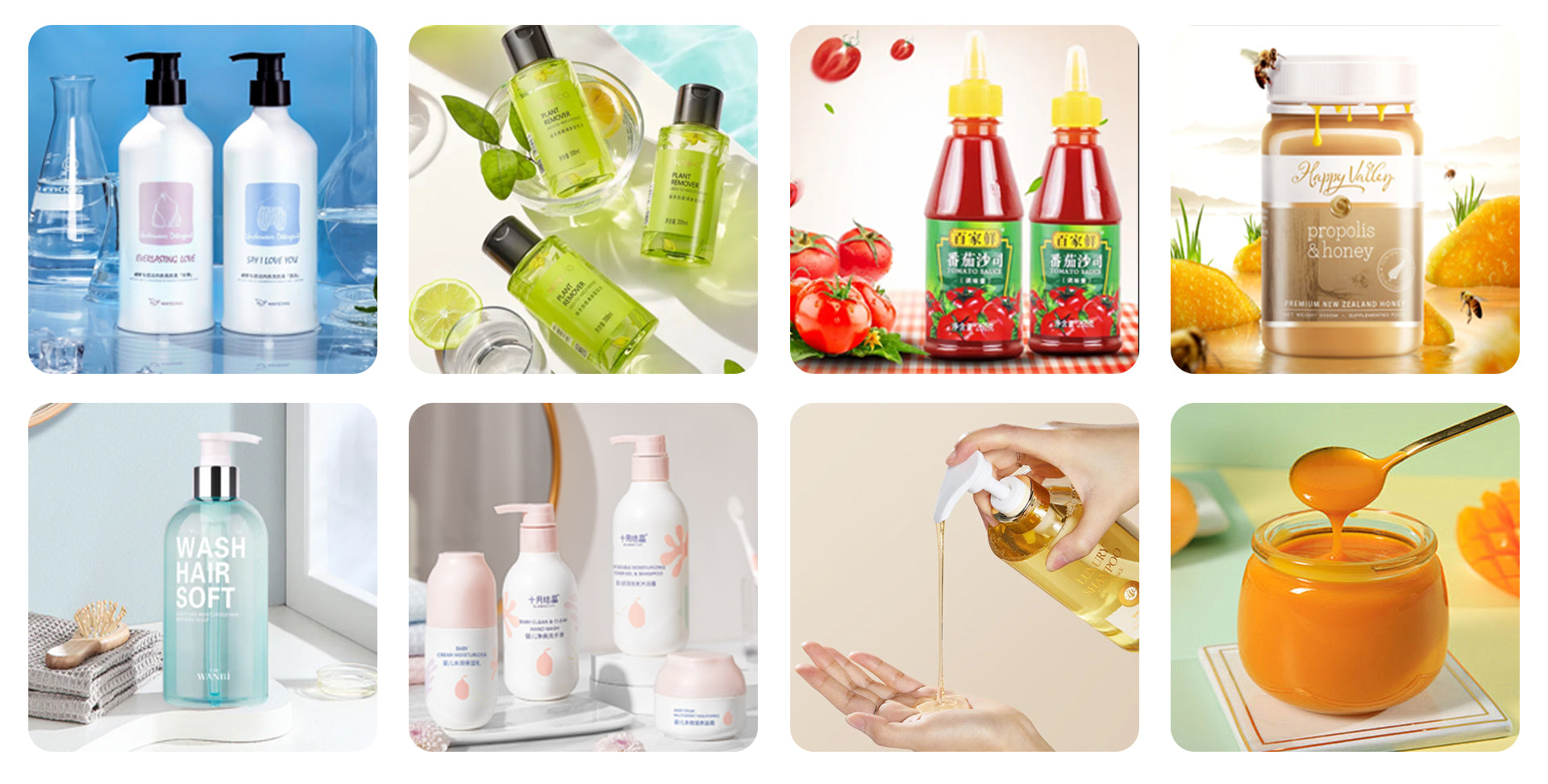 | Food & Beverage | Sauces, mayonnaise, condiments, jams, nut butters, pastes, chocolate spreads, tomato paste, honey |