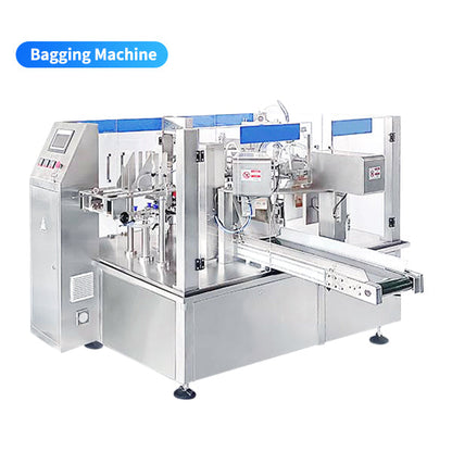 This is a granule bagging machine. It is applicable to candy, melon seeds, jelly, pet food, puffed food, pistachios, peanuts, nuts, almonds, raisins, large shell nuts, hardware, plastic granules, and other irregular shapes of materials. It can be assembled with a multiple-head weighing and a feeding device to form an automated line. It is widely used in the food packaging industries.