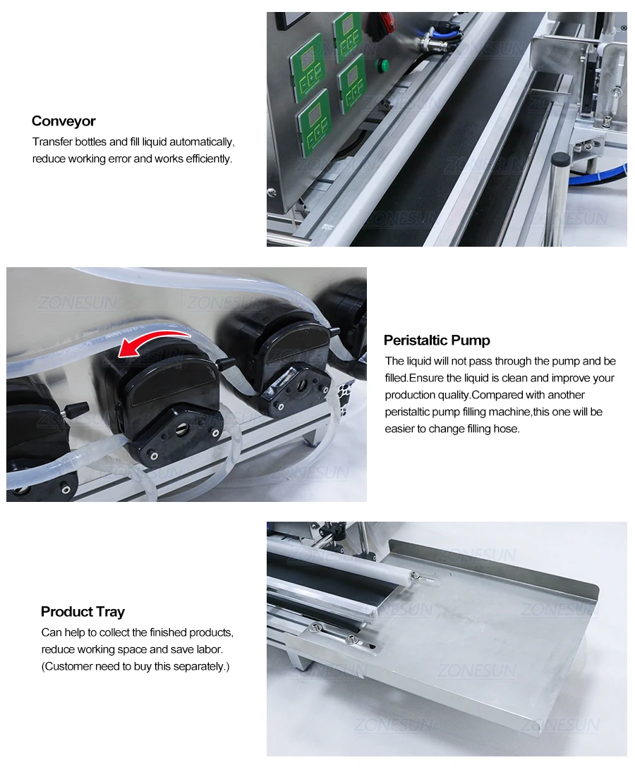 ZONESUN ZS-DTPP4B Máquina automática de llenado de líquidos con bomba peristáltica de 4 boquillas