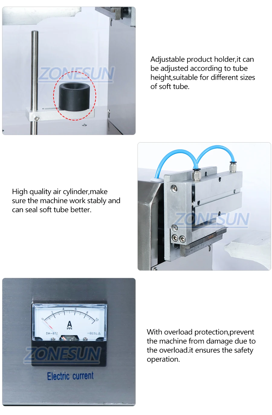 Esta máquina es adecuada para sellar tubos blandos como pasta de dientes, crema solar, crema para manos, champú, etc. Tiene función de corte, que puede cortar el tubo innecesario después del sellado. La máquina puede equiparse con un codificador de fecha, que puede ayudar a imprimir el lote o la fecha de producción en el tubo. Ahorre costos de mano de obra y mejore la eficiencia del trabajo.