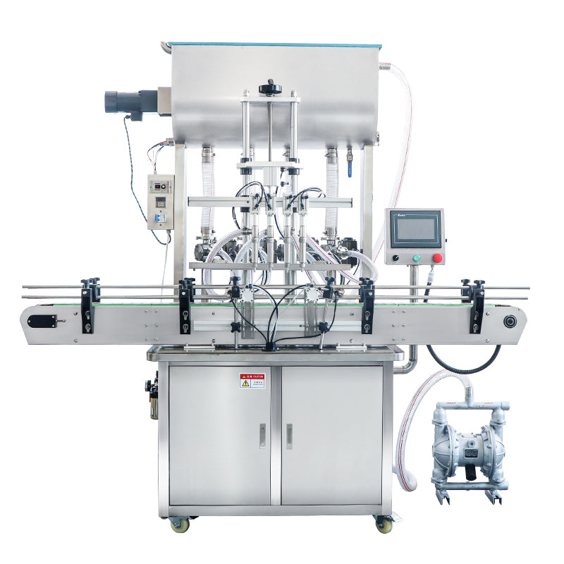 Esta máquina tiene función de mezcla y calentamiento , lo que la hace adecuada para llenar pasta viscosa , como chocolate, miel, pasta de chile. Puede trabajar con una máquina tapadora y etiquetadora automática, realizando una producción automatizada. La máquina puede ser ampliamente utilizada en las industrias diarias de productos químicos, alimentos y bebidas.