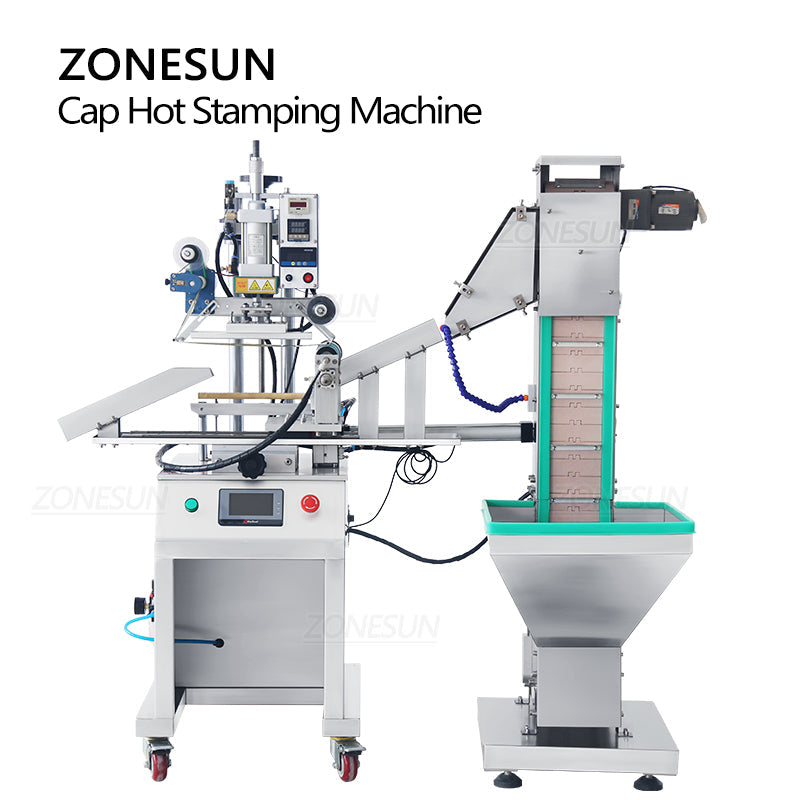 ZONESUN ZS-819R2A Pneumatic Bottle Cap Hot Stamping Machine with Cap Feeder
