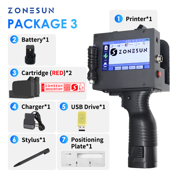 This is a handheld inkjet printer. It supports multiple languages. It can print different codes or patterns on a flat surface and is applicable to various materials. It is equipped with a 4.3-inch touch screen on which users can directly edit the file. Also, users can transfer computer files by a USB drive.