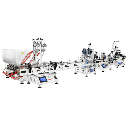 Streamline your packaging process with our Complete Packaging Line. Featuring a Piston Filler, 4 Wheel Capper, and Wrap Around Labeler, this efficient line is designed for creamy products. Fill 4 products simultaneously, cap securely with 4 wheel technology, and apply precise labels.