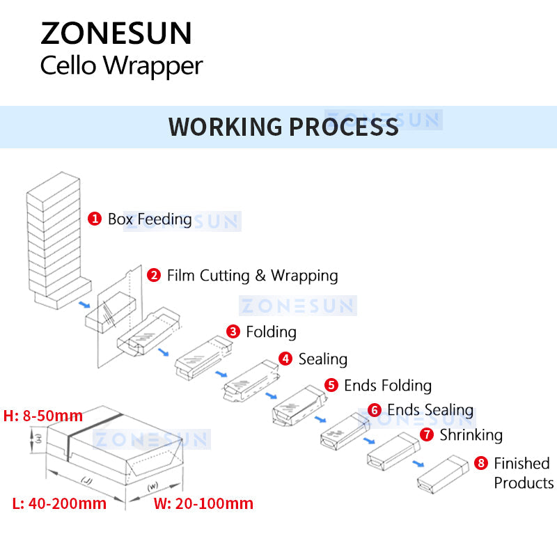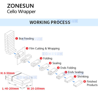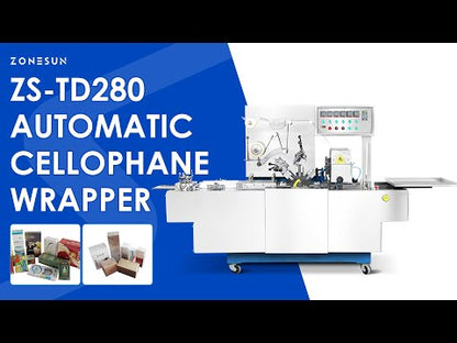 ZONESUN Automatic Cellophane Packaging Machine Cello Wrapper Boxes Overwrapping Product Packing Equipment ZS-TD280