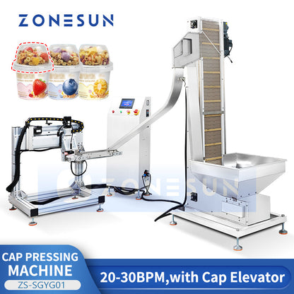ZONESUN ZS-SGYG01 Automatic Yogurt Cup Lid Pressing Machine with Cap Elevator Plastic Cup Sealing Equipment