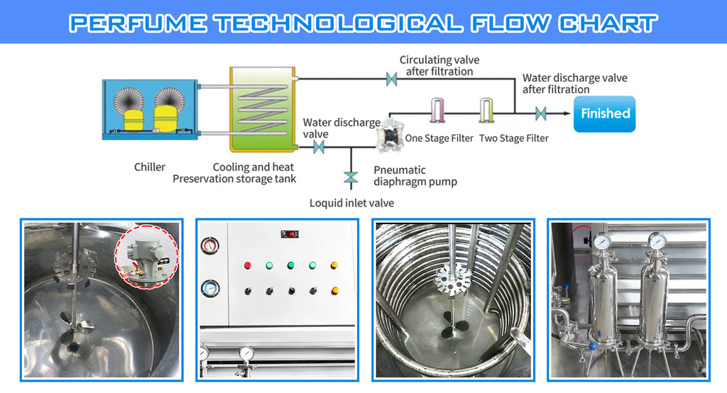 After the mixing process, the production line includes a cooling system to reduce the temperature of the perfume mixture. This cooling stage is crucial for stabilizing the fragrance and preventing the degradation of volatile components. By maintaining an optimal temperature, the production line preserves the scent integrity and enhances the longevity of the perfume.